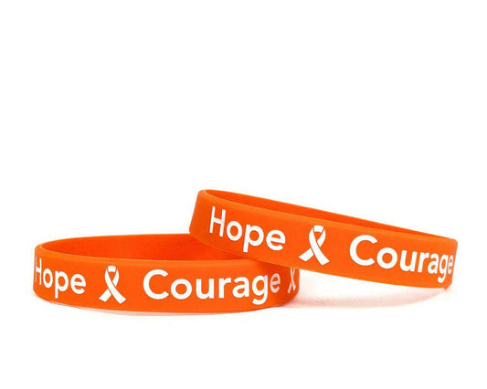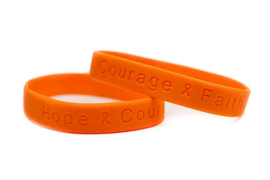 Hope Courage Faith Orange Rubber Bracelet Wristband - Adult 8"