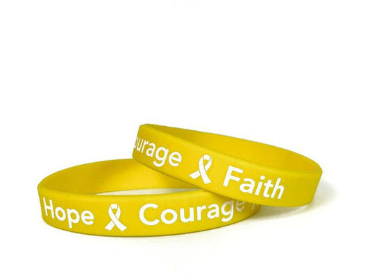 Hope Courage Faith Yellow Rubber Bracelet Wristband - Adult 8"
