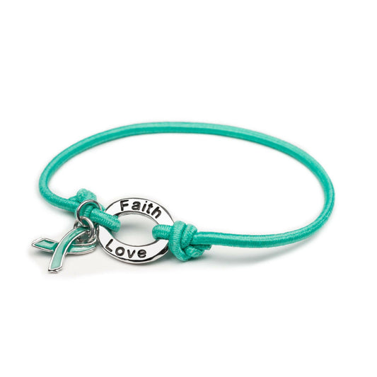 Hope Courage Faith Teal Rubber Bracelet Wristband - Adult 8"