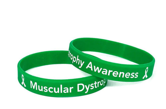 Buy Muscular Dystrophy Awareness Ribbon Magnets and Muscular Dystrophy Awareness Rubber Bracelet Wristbands.