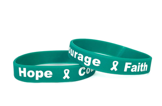 Hope Courage Faith Teal Rubber Bracelet Wristband - Adult 8"