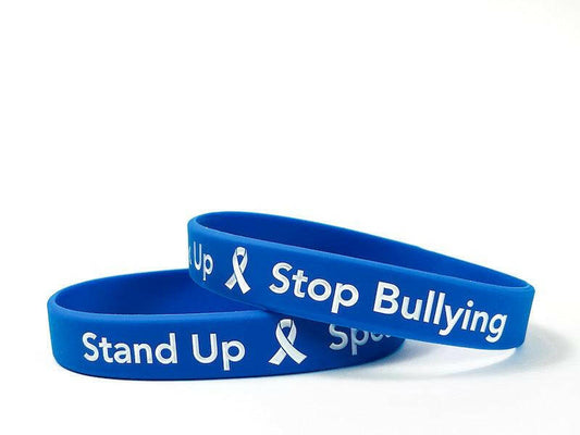 Stand Up - Speak Up - Stop Bullying White Letters Blue Wristband - Adult 8"
