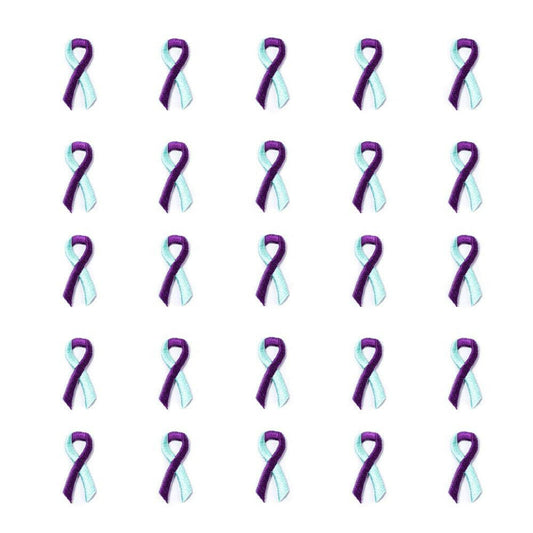 Purple Turquoise Ribbon Embroidered Stick-ons - 25-pack