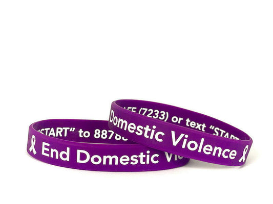 End Domestic Violence purple wristband white letters - Adult 8"