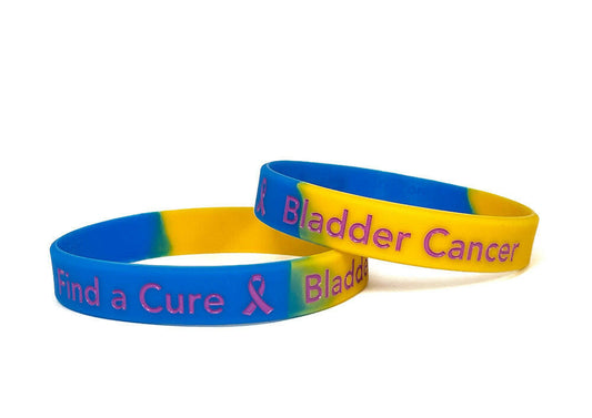 Bladder Cancer Find a Cure blue, yellow, purple wristband - Adult 8"