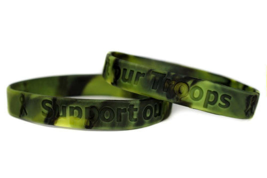 Support our Troops Rubber Bracelet Wristband - Camouflage - Adult 8"