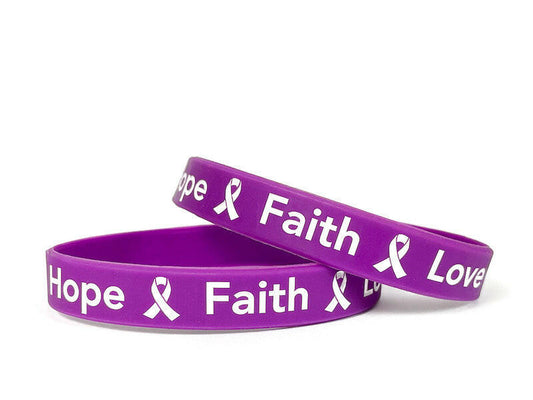 Hope Faith Love Purple Rubber Bracelet Wristband - Adult 8"