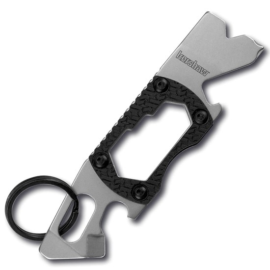 Key chains just got handier with the PT-2 key chain tool. Offering eight handy functions in a compact space. Weighing less than an ounce it offers a bottle opener and cap lifter, a pry bar, two screwdriver tips, a wire scraper and 3 sizes of hex drives. And because it's a real tool, it's quality 8Cr13MoV stainless steel with an attractive bead-blasted finish. For good grip it features a handle overlay in glass-filled nylon with a K-Texture pattern. Just use the lanyard hole to attach to your key chain.