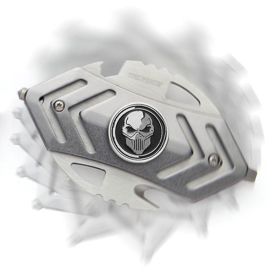 Glass breaker, seat belt cutter, screwdriver, bottle opener, and wait for it...fidget spinner! Addictive and handy, you won’t be caught unprepared for an emergency or be bored again! Solid stainless steel with a skull on the pivot. A bit mesmerizing to play with and really works as a tool.
